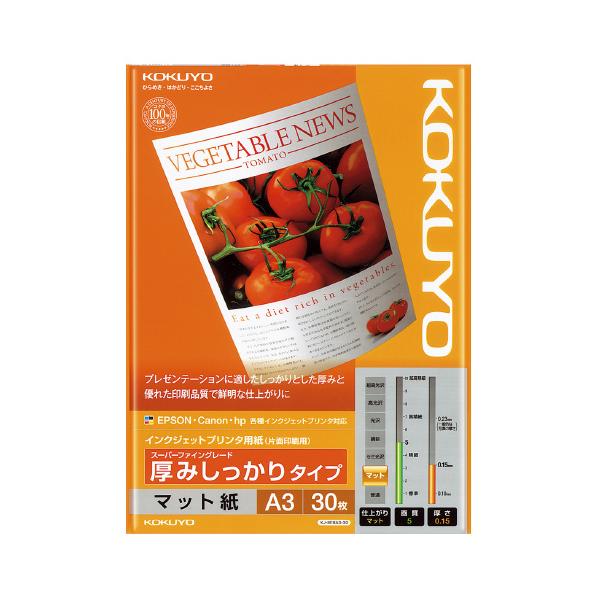 コクヨ インクジェットプリンタ用紙厚みしっかり スーパーファイングレード A3 30枚 KJ-M16A3-30
