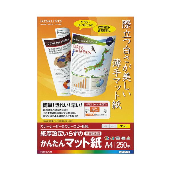 コクヨ LBP&カラーPPC用かんたんマット紙 特薄口 A4 250枚 LBP-KF1115