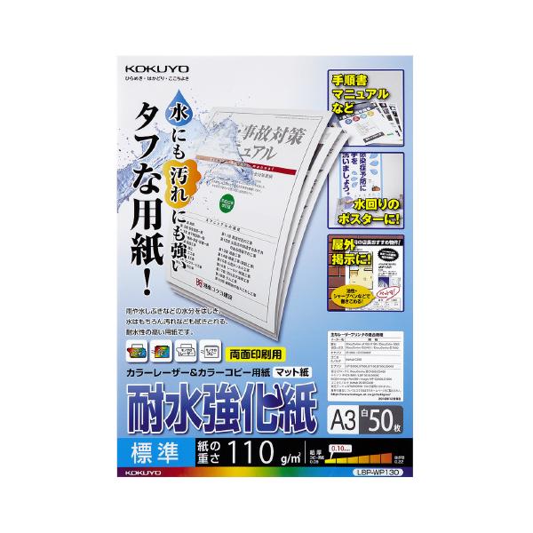 コクヨ カラーLBP&カラーコピー用耐水強化紙 A3 50枚 標準 LBP-WP130