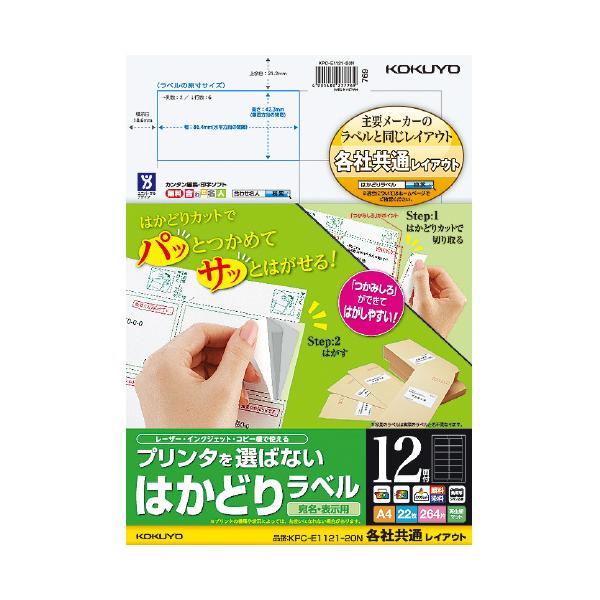 コクヨ プリンタを選ばないはかどりラベル A4 12面 22枚入り KPC−E1121−20N