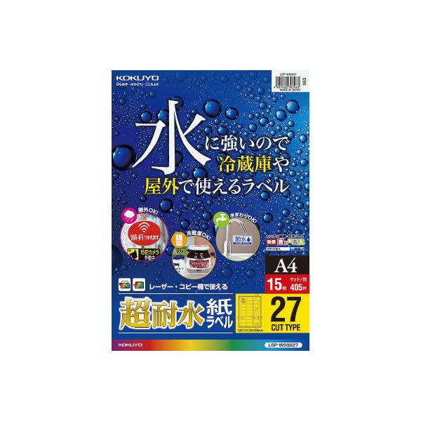コクヨ カラーLBP用 超耐水紙ラベル A4 15枚入 27面カット LBP-WS6927