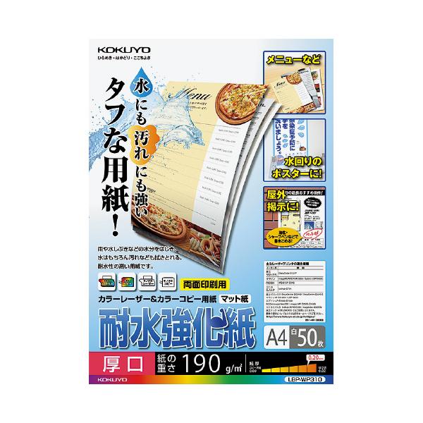 コクヨ カラーレーザー&カラーコピー用紙 耐水強化紙 A4 50枚 LBP-WP310