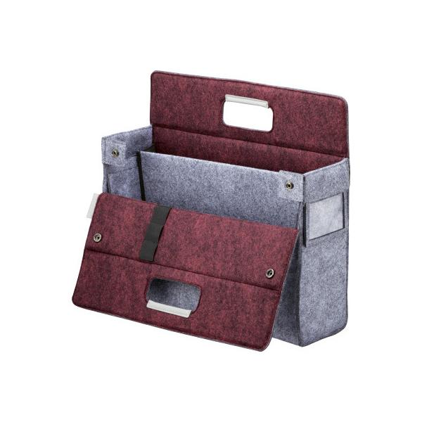 - ●バッグの手前が大きく開き、中身が見やすく取り出しやすい。デスク上でも省スペースで使えるので便利です。●ファイルボックスのように棚にそのまま収納でき、必要な時はそのまま取り出せます。●書類やノート、モバイル端末にマウス、電源ケーブルをひとつにまとめられ、社内をスマートに移動できます。●フェルト生地を使用し、オフィスインテリアのトレンドを取り入れたスタイリッシュなデザインです。
