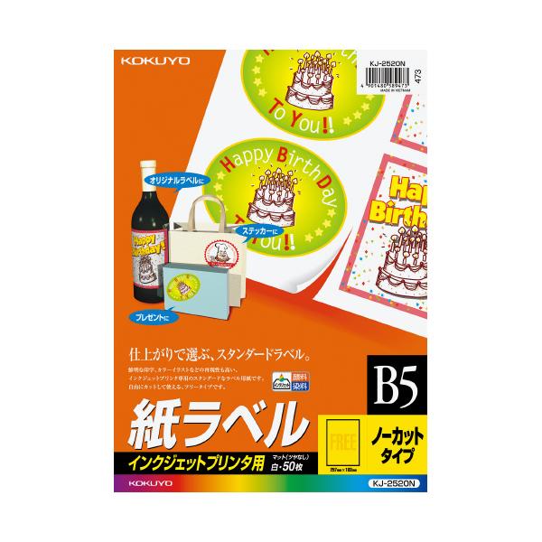 コクヨ インクジェットプリンタ用紙ラベル B5 ノーカット 50枚 KJ-2520N