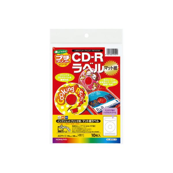 コクヨ IJP用CD−Rラベル プチプリント マット紙 A5 4面1組 10枚 KJ−J87461−10