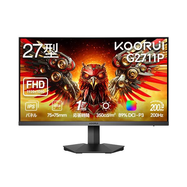 KOORUI G2711P 27型 IPSパネルフルHDゲーミングモニター 200Hz HDR400 3辺フレームレス ブラック