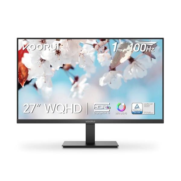KOORUI モニター 27インチ IPS 非光沢 WQHD 100hz 1ms pcモニター ブルーライト軽減 HDMI DisplayPort H