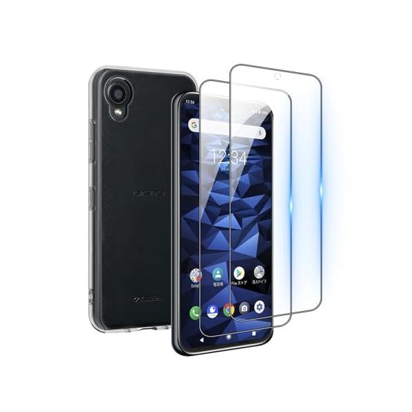 DIGNO BX2 A101KC 2個ガラスフィルム+ケース+DIGNO BXii 両用ストラップ付き スマホカバー 超薄型 軽量 TPU クリ