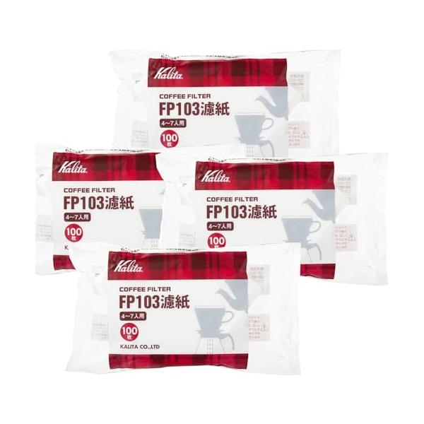 カリタ Kalita コーヒーフィルター FP103濾紙 4~7人用 100枚入り ホワイト #15085 4個セット