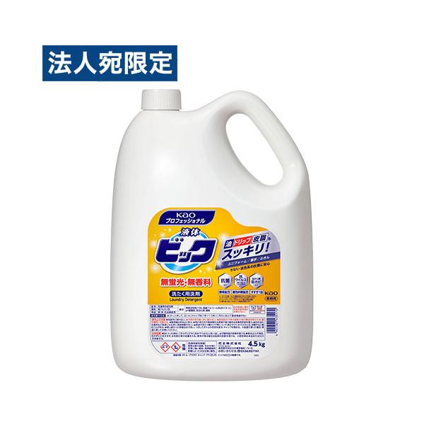 Yahoo 通販 4901301435170 1M8865 花王 液体ビック 無蛍光 無香料タイプ 業務用 4.5kg かおう カオウ かおー カオー KAO kao Kao 花王プロフェッショナルサービス 花王プロフェッショナル 花王プロシリーズ 花王業務用 業務用 大容量 洗剤 せんざい 衣料用洗剤 衣類用洗剤 洗濯用洗剤 洗たく用洗剤 液体洗剤 衣料用 衣服用 衣料 衣類 衣服 液体 液体タイプ 酵素 酵素配合 無蛍光 無香料 弱アルカリ性 無リン ビック 油 血液 皮脂 コック服 ダスター タオル シーツ 抗菌 詰替 詰替え 詰め替え 詰替用 詰替え用 詰め替え用 洗剤 日用品 洗濯用品 洗たく用品 ランドリー用品 洗濯 洗たく 衣類ケア
