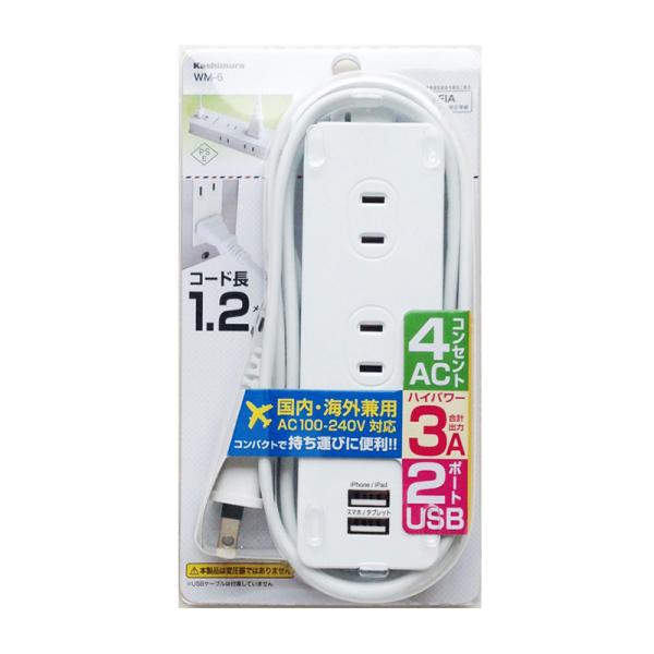 Kashimura カシムラ 国内・海外兼用電源タップ Aタイプ AC4P USB2P 3A WH 1.2m WM-6