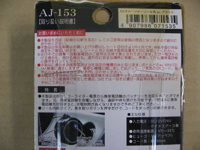 【色褪色】 カシムラ KASHIMURA AJ-153 DCチャージャーリール式 au ブラック 12V車 24V車 シガーソケット充電器