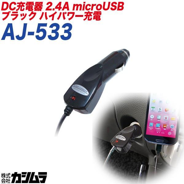 充電器 車載用 microUSB 2.4A対応 コード長 約1.2m DC12V DC24V車対応 カシムラ kashimura AJ-533