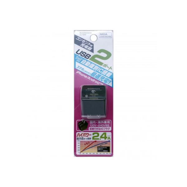 AC充電器 2.4A USB2P IC ブラック AJ-555 |b03