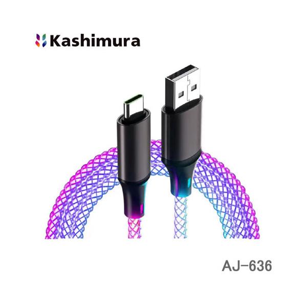 カシムラ USB充電&同期ケーブル 1.2m USB-A⇔Type-C レインボーLED ケーブル全体が鮮やかに発光して演出! AJ-636