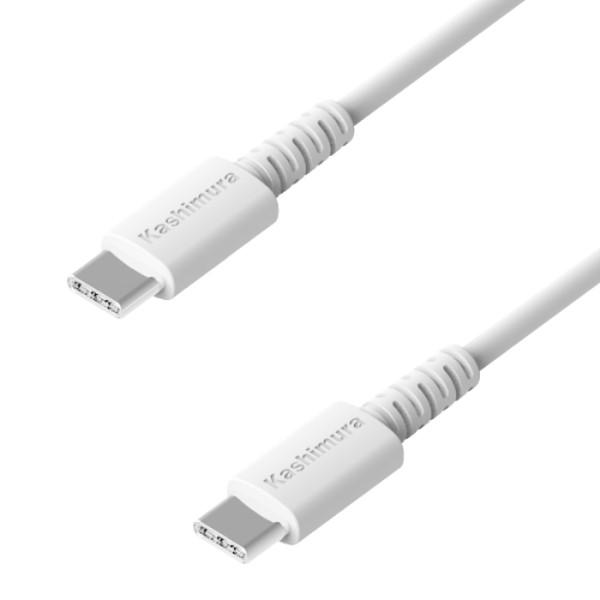 USB充電&同期ケーブル 1.2m C-C WH USB-PD 最大60W CCケーブル 充電器 データ通信 480Mbps 安全 ホワイト コード1.2m 20V 3A 高速充電 カシムラ AJ-662