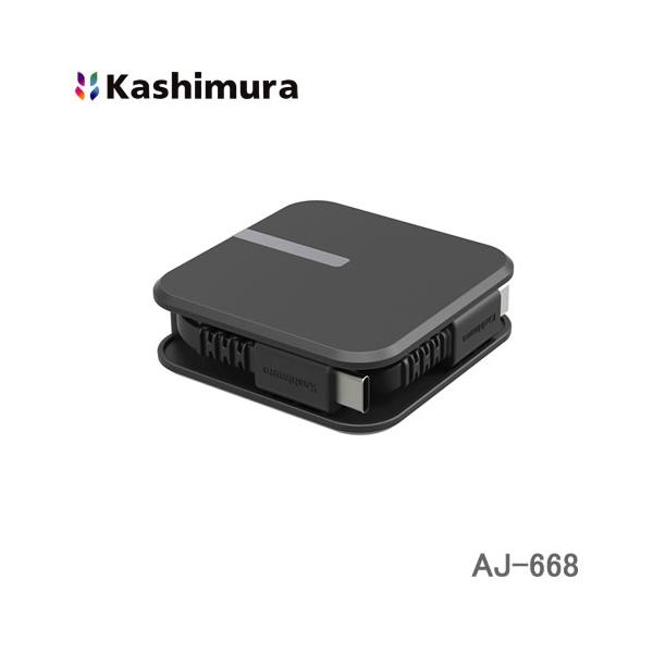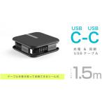 カシムラ AJ-668 USB充電&同期ケーブル USB-C→USB-C リール式1.5m 黒 USB-PD最大60W(20V3A)高速充電対応