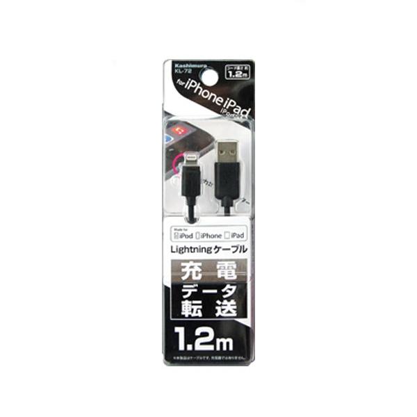 許容電流2.4A iphone対応 ipad対応 ブラック USB充電&同期ケーブル 1.2m Lightning BK KL-72 カシムラ