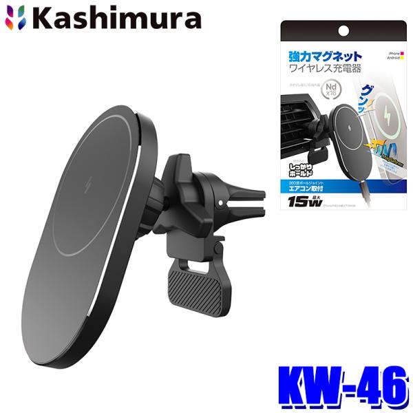 KW-46 カシムラ Kashimura マグネットワイヤレス充電器 エアコン取付 最大出力15W USB Type-C 重さ300gまで 角度調整可能 USB電源ケーブル付き