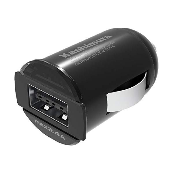 カシムラ DC-2.4A-リバーシブルUSB 自動識別 インジケーター コンパクトUSB車載充電器 分配器 12V/24V車対応 蓋付きソケット