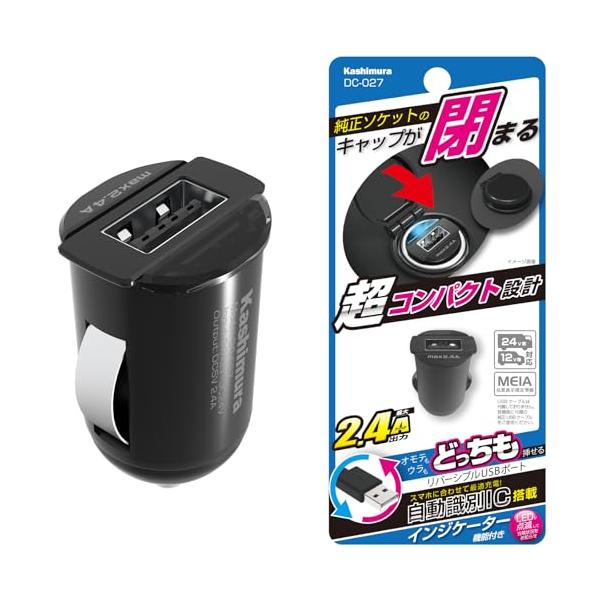 カシムラ(Kashimura) キャップが閉まる! 超コンパクトなカーチャージャー 12W 1ポート iPhone/android各種対応 イン