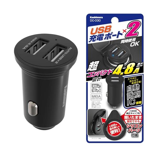カシムラ(Kashimura) DC-4.8A USB 2ポート 自動識別 USB車載充電器 分配器 12/24V車対応 NDC-030