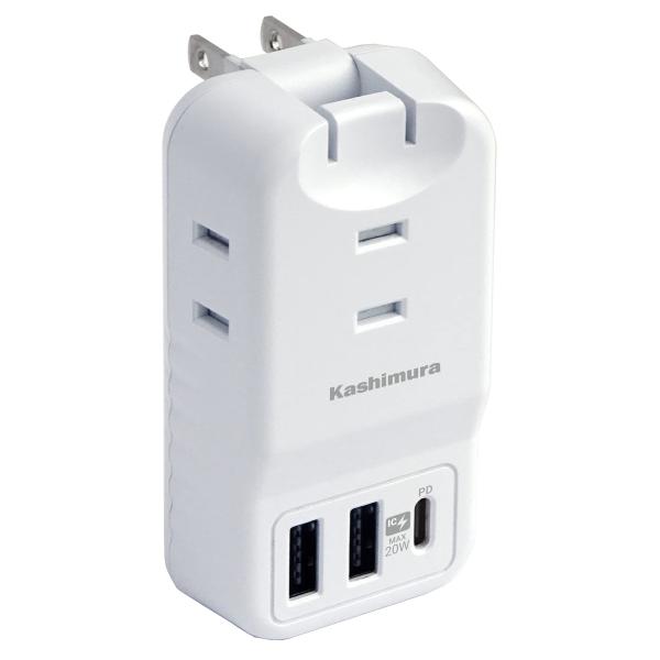 カシムラ 3コンセント-USB-A2口 USB-C1口 20W PD 自動識別 ホワイト リバーシブルUSB 100?240V対応 NAC-035