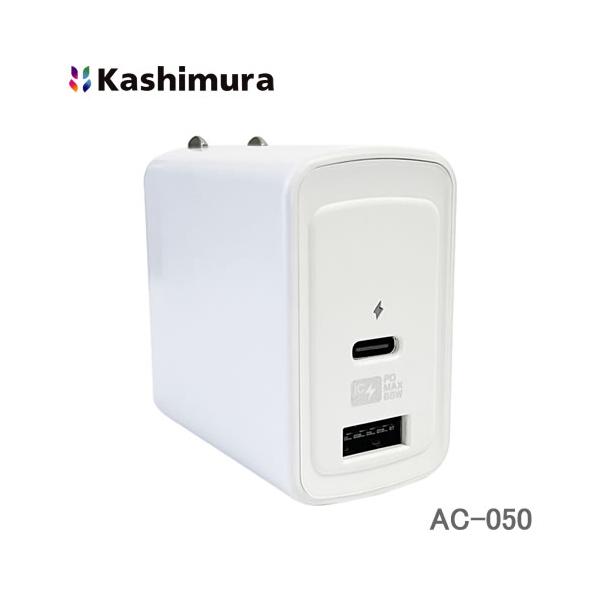 カシムラ 持ち運びに便利なAC充電器 2ポート(USB-A/USB Type-C 最大65W)搭載 AC-050