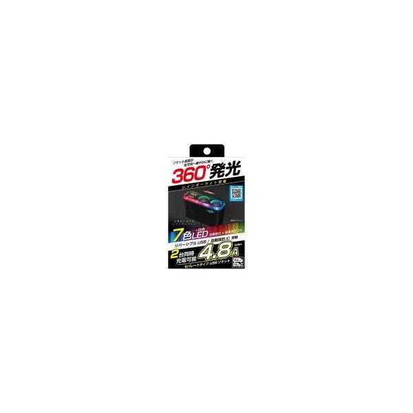 カシムラ KX-236 2連セパレートソケット 2USB4.8A レインボーライト付