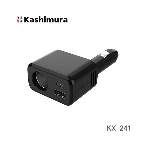 カシムラ 12/24V兼用 車載用電源増設ソケット USB-Aポート/USB Type-Cポート/DCソケット USB PD(Power Delivery)規格対応 KX-241