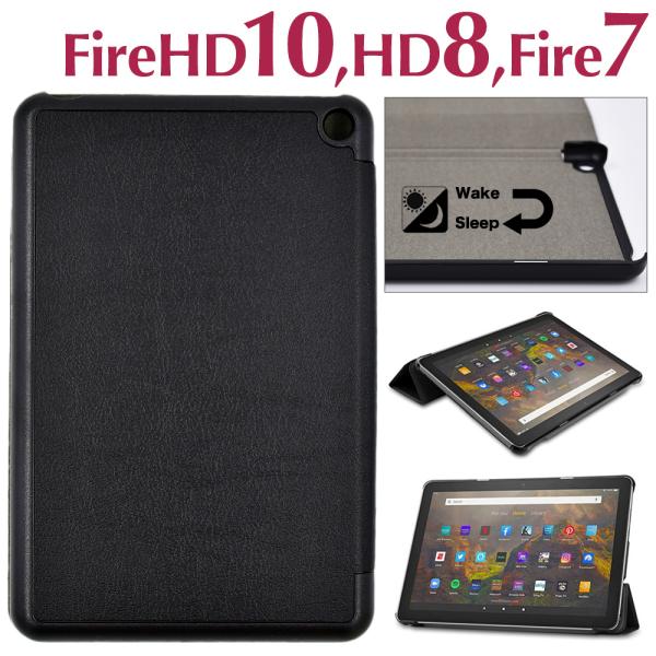 Kindle Fire ケース 横置き可能 オートスリープ対応 HD10 2021 HD8 Plus Fire7 2022 12世代 2020 10世代 レザー キンドル カバー ファイア
