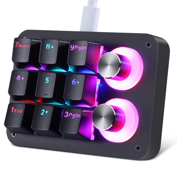 Koolertron 片手ゲーミングキーボード マクロキーボード ラピッドトリガー メカニカル プログラム可能 左手デバイス 4層レイヤー RGBバックライト カスタマイズ可能 ミニ ショットカットキー 小型 Type-C有線接続 ポータブル Windows/MAC対応 ゲーム&動画編集&絵描き適用 (ブラック 9キー 赤軸)