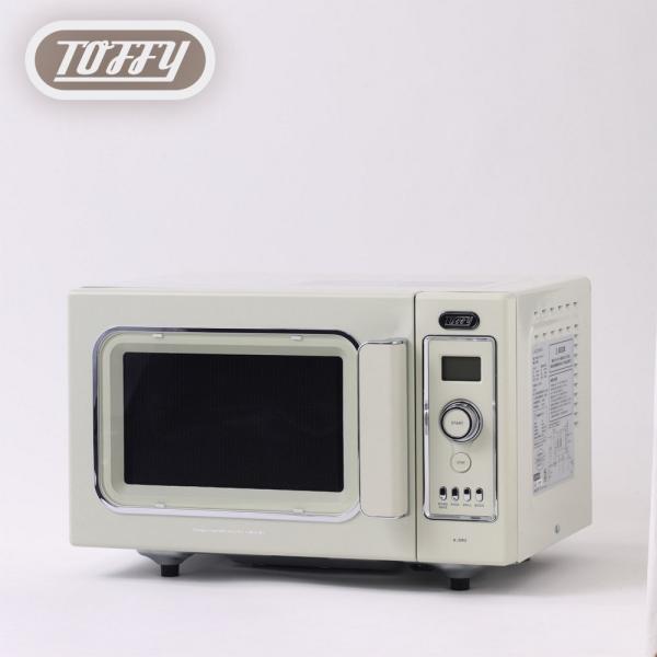 - 商品詳細 商品名 Toffy オーブンレンジ 品番 ペールアクア:K-DR2-PAアッシュホワイト:K-DR2-AW JAN ペールアクア:4934122092086アッシュホワイト:4934122092093 本体サイズ 本体:(約)幅46.1×奥行36.1×高さ29.4cm加熱室の有効寸法:(約)幅26.7×奥行29.4×高さ19.4cm 本体重量 (約)13.2kg 庫内容量 (約)16L 電源 AC100V 50-60Hz 定格消費電力 920W/1250W 発信周波数 2450HMz 定格高周波出力 500W/650W 電熱装置の定格消費電力 1000W 電子レンジ機能の年間消費電力量 62.8kWh/年 オーブン機能の年間消費電力量 10.5kWh/年 年間待機時消費電力量 0.00kWh 年間消費電力量 73.3kWh/年 電源コード長 (約)1.5m 生産国 中国 付属品 角皿、ユーザーズガイド(保証書含む) 備考 完成品※商品改良のため、本製品の仕様やデザインは予告なく変更されることがあります。※この製品を使用できるのは日本国内のみで、海外では使用できません。※個体差やロット・モニター環境等により、色味やサイズが若干表記と異なる場合がございます。±1〜2cm程度の誤差は許容範囲となりますので、あらかじめご了承の上ご購入下さいませ。商品到着後にレビュー記入で選べるプレゼント♪ 電子レンジだけではなくオーブン機能・グリル機能も搭載!ターンテーブルなしのフラット庫内でお手入れもラクラクです♪ おしゃれなレトロスタイルのオーブンレンジ 電子レンジ(あたため)だけでなく、オーブン機能やグリル機能を搭載し、トーストやスイーツ、パン作りなども楽しめる高機能オーブンレンジです。 コンパクトで省スペースな作りながら、容量約16Lと使い勝手のよいサイズ感。一人暮らしにも最適です。ターンテーブルなしのフラット庫内で、お手入れもラクラク。汚れが付いてしまってもさっと拭き取るだけ♪ 4つのモードから選ぶ「簡単操作」 電子レンジで加熱します。ボタンを押すごとに「HIGH、500W、350W、200W」の順に加熱出力を切り替えることができます。選択した加熱出力はディスプレイに表示されます。 加熱温度 100〜200℃ (10℃単位)で設定可 オーブンで加熱します。ボタンを押すごとに予熱あり、予熱なしを切り替えることができます。予熱ありの場合はディスプレイに[PRE-HEAT]が表示されます。 グリルで加熱します。上部ヒーターで表面を焼き上げるため、肉や魚を香ばしく焼くのに最適のモードです。※角皿は食材のサイズに合わせてセットします 解凍、ドリンク、ご飯あたための専用加熱モードを選択します。どちらも電子レンジで加熱する専用モードで、調理物をすばやくあたためます。 チャイルドロック機能が搭載されているため、小さなお子様のいるご家庭でも安心してご使用いただけます。 ボタンの少ないシンプルな作りで、操作も簡単。すばやくあたためできる電子レンジ機能と、オーブンやグリルモードの搭載で本格料理にも対応した、マルチなオーブンレンジです。 レトロ可愛いデザイン キッチンに映える、個性的でレトロなデザイン。 専用化粧箱付き 専用ケースが付いているので、ギフトにもおすすめ! サイズ 【本体寸法】 横幅 奥行き 高さ 約46.1cm 約36.1cm 約29.4cm 【加熱室の有効寸法】 横幅 奥行き 高さ 約26.7cm 約29.4cm 約19.4cm color variation ペールアクア アッシュホワイト 商品詳細 商品名 Toffy オーブンレンジ 品番 ペールアクア:K-DR2-PAアッシュホワイト:K-DR2-AW JAN ペールアクア:4934122092086アッシュホワイト:4934122092093 本体サイズ 本体:(約)幅46.1×奥行36.1×高さ29.4cm加熱室の有効寸法:(約)幅26.7×奥行29.4×高さ19.4cm 本体重量 (約)13.2kg 庫内容量 (約)16L 電源 AC100V 50-60Hz 定格消費電力 920W/1250W 発信周波数 2450HMz 定格高周波出力 500W/650W 電熱装置の定格消費電力 1000W 電子レンジ機能の年間消費電力量 62.8kWh/年 オーブン機能の年間消費電力量 10.5kWh/年 年間待機時消費電力量 0.00kWh 年間消費電力量 73.3kWh/年 電源コード長 (約)1.5m 生産国 中国 付属品 角皿、ユーザーズガイド(保証書含む) 備考 完成品※商品改良のため、本製品の仕様やデザインは予告なく変更されることがあります。※この製品を使用できるのは日本国内のみで、海外では使用できません。※個体差やロット・モニター環境等により、色味やサイズが若干表記と異なる場合がございます。±1〜2cm程度の誤差は許容範囲となりますので、あらかじめご了承の上ご購入下さいませ。 ご注文・配送についてのご注意必ずお読みください 返品・交換について必ずお読みください