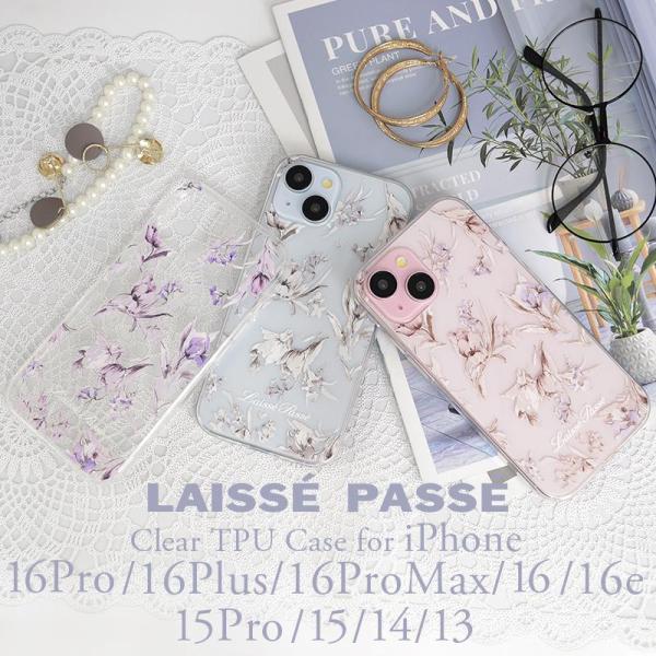 セール iPhone17e クリア ケース iPhone16 16Pro 16Plus 16ProMax 16e 15 14 LAISSE PASSE レッセパッセ TPU 水彩花 フラワー ブランド 花柄 かわいい