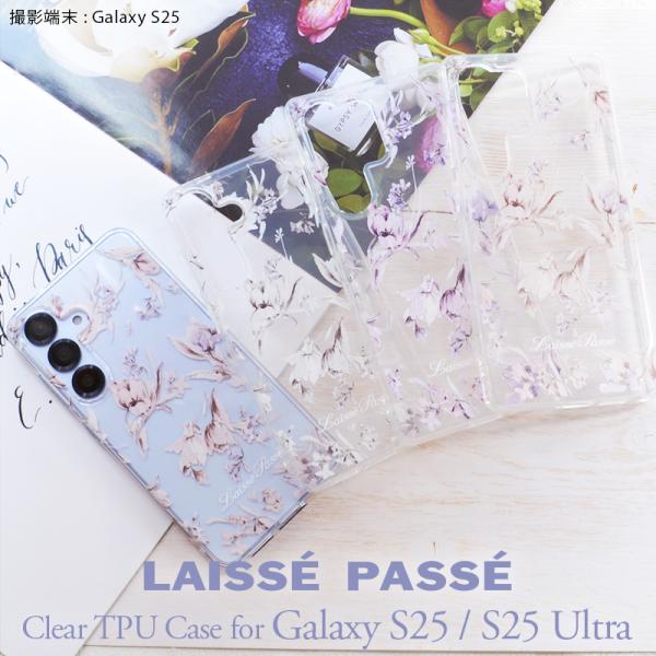 Galaxy S25 ケース S25Ultra ケース LAISSE PASSE レッセパッセ 水彩花 TPU クリア ケース ブランド galaxy s25 ultra ケース 花柄 かわいい laisse passe