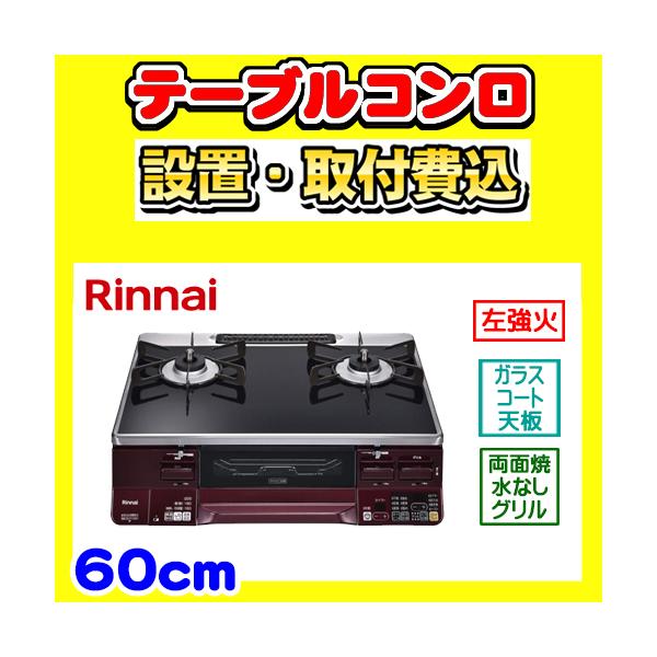 RTE65VARBA-GL テーブルコンロ 左強火力 ガステーブル 2口 取付 設置 込み リンナイ ラクシエ 交換 廃棄処分 付き