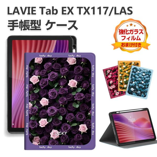 - LAVIE Tab EX TX117/LAS PC-TX117LAS ケース カバー TAB11/301 手帳型 おしゃれ Tab Penの収納 鮮やかな 多彩 花柄 PUレザー スタンド機能 綺麗な 人気 オートスリープ機能 おすすめ 持ちやすい 汚れ防止 お洒落な タブレット保護 ケース 強化ガラスフィルム おまけ付き
