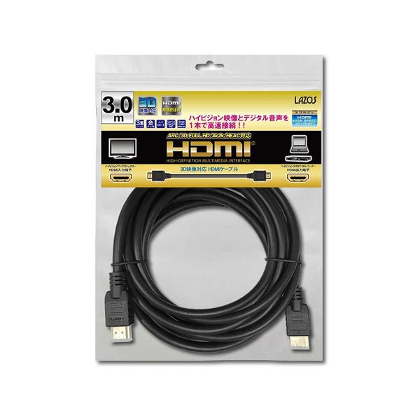 3D映像対応 HDMIケーブル 3m Lazos L-HD3 (67-0382-96)