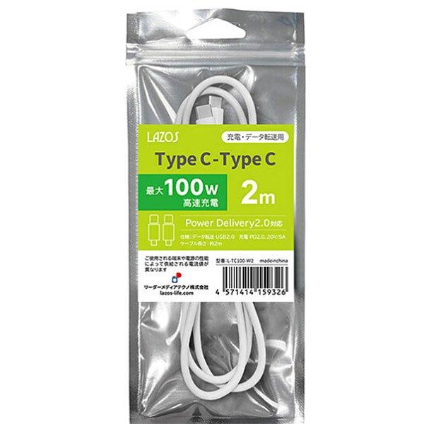 Lazos TypeC-TypeC ケーブル 100W 2m ホワイト L-TC100-W2