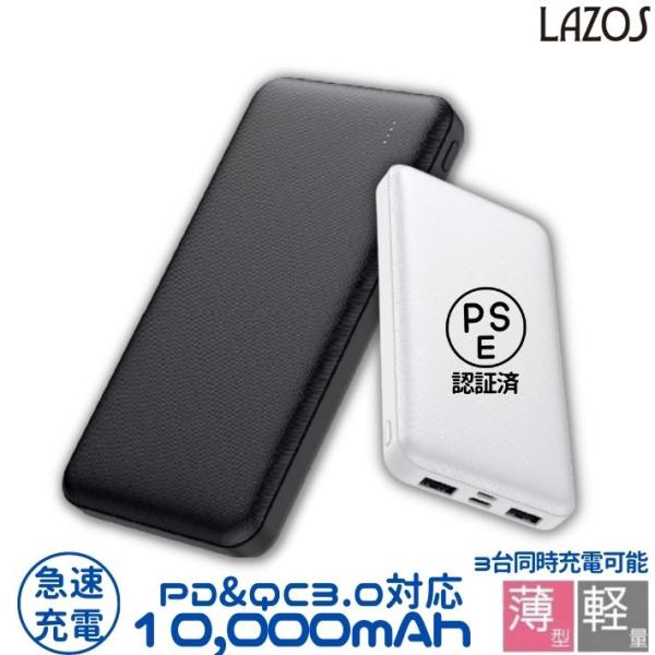 モバイルバッテリー 10000mAh 大容量 小型 軽量 薄型 PD 急速充電 3台同時充電可能 携帯充電器 持ち運び 充電 iPhone iPad Android 各種対応 ホワイト ブラック【PSE認証済】あすつく対応