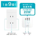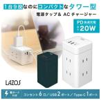 タワー式 電源タップ 縦型コンセント 縦置き 横置き 雷ガード 6 AC差込口 2USBポート type-c 1ポート PD対応 USB急速充電器 たこあし コンセント