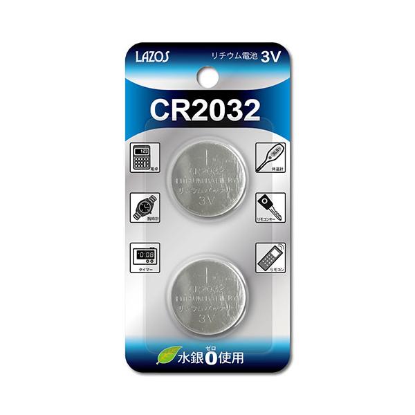 【180個セット(2個×90セット)】 Lazos リチウムボタン電池 CR2032 L-C2032X2X90