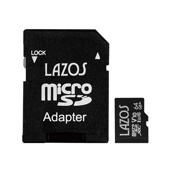 - LAZOSの高耐久メモリカード。地球にやさしい紙パッケージ★ドライブレコーダーなどの常時録画向けに最適★あおり運転・事故など、突然のトラブル対策に★防水・耐静電気・耐X線・耐衝撃のタフ仕様 ドライブレコーダーなどの常時録画に適し、フルHD・4K動画をスムーズに録画できます。 カーナビや防犯カメラなど重要な動画をしっかり残します。 -20〜80℃の動作温度、防水・耐静電気・耐X線・耐衝撃機能を搭載し、厳しい環境にも対応。 SDアダプターも付属し、microSDカード以外にSDカードとしても使用可能。容量:64GB規格:microSDXCスピードクラス:CLASS10相当、UHS:UHS-I U3、ビデオ:V10最大転送速度:100MB/s (読み出し)、50MB/s (書き込み)保証期間:お買い上げより1年間●必ずお手持ちの機器をご確認のうえ、本メモリカード対応の機種でご使用下さい。●データ転送スピードは、ハードウェア・ソフトウェア・使用方法等によって異なる場合があります。●子供の手の届かない所に保管して下さい。また、誤飲にご注意下さい。●本メモリカードのご使用において、製品との相性問題によるデータ破壊、消去が発生した場合、一切責任を負いません。●本メモリカードの使用、使用不能から生じた損害、天災、逸失利益および第三者からの損害、逸失利益および第三者からの 請求等に関して一切責任を負いません。●正常な使用での故障の場合は、修理または交換対応となります。記録データなどは保証対象外となります。お客様の責による原因の物理的破損、製品耐久性を超えた故障なども保証対象外となります。●掲載されている各製品は一般的に各社の商標または登録商標です。●付属のアダプターは保証対象外となります。●高温多湿・直射日光を避けた状態で保存、ご使用下さい。