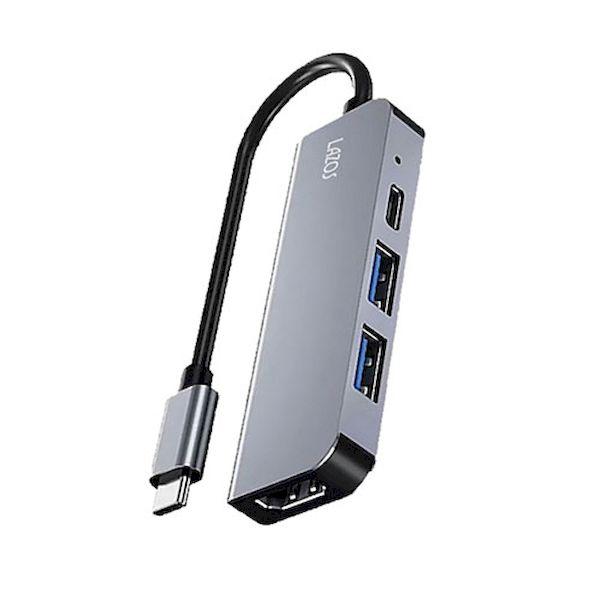 【個数:1個】L-CHU4X6 直送 代引不可 6個セット Lazos 変換アダプタ TypeC 4in1 シルバー LCHU4X6