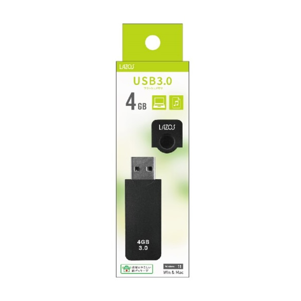 Lazos キャップ式USBフラッシュメモリ(ブラック) 4GB