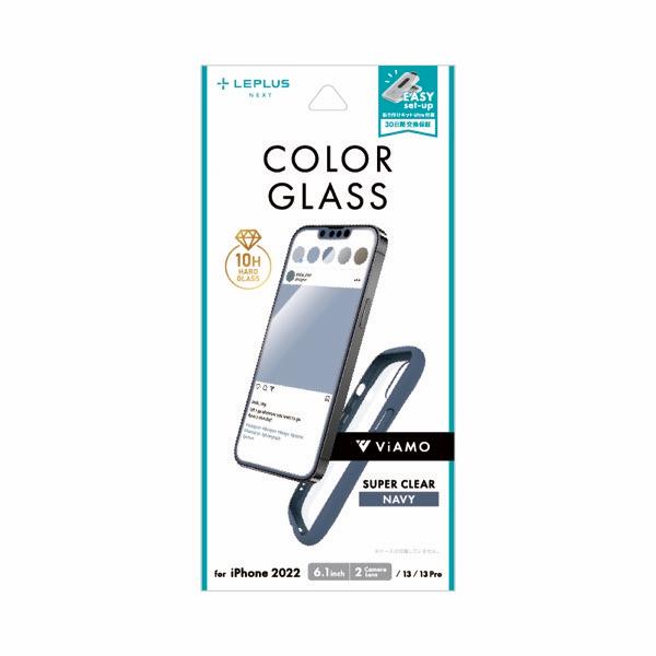 LEPLUS ルプラス iPhone 14 / 13 / 13 Pro ViAMO COLOR GLASS 全画面保護 ソフトフレーム 0.25mm ネイビー LN-IM22FGVMNV