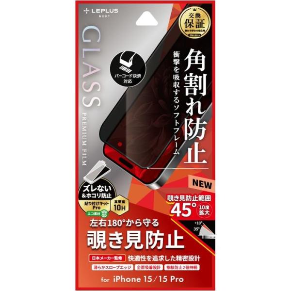 iPhone 15/iPhone 15 Pro ガラスフィルム 「GLASS PREMIUM FILM」 全面保護 ソフトフレーム 覗き見防止180°