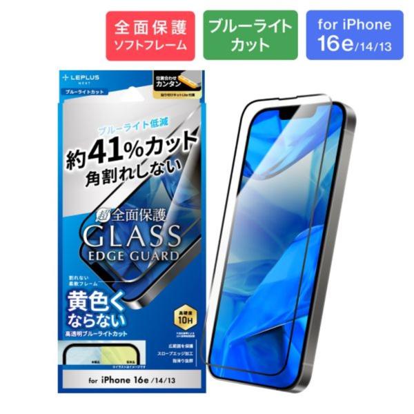 MSソリューションズ LN-ISS24FGLSB iPhone 16e/iPhone 14/iPhone 13 ガラスフィルム「GLASS PREMIUM FILM Lite」全面保護 ソフ
