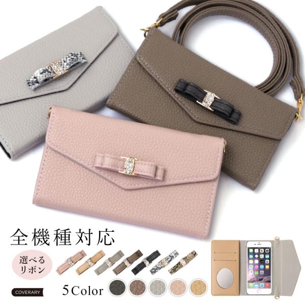 isai Beat LGV34 ケース 手帳型 ショルダー おしゃれ ミラー付き ブランド スマホケース 全機種対応 android リボン イサイ カバー カード収納 ストラップ付き