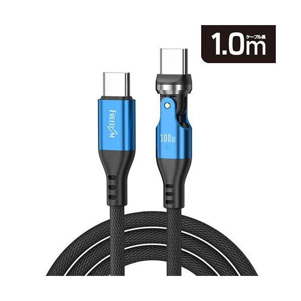 フリーダム FUSB-CCALL610BBL ブルー 540°回転コネクタケーブル Type-C to C PD100W対応 1m